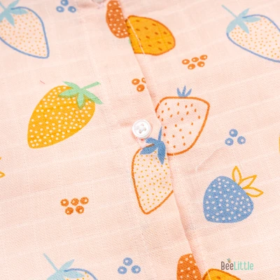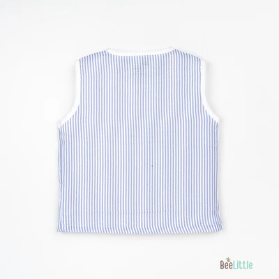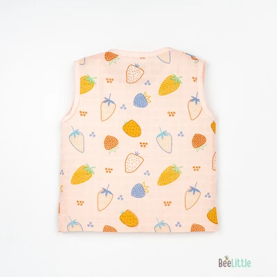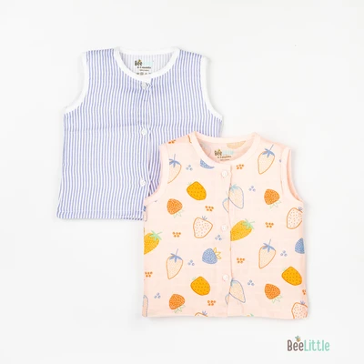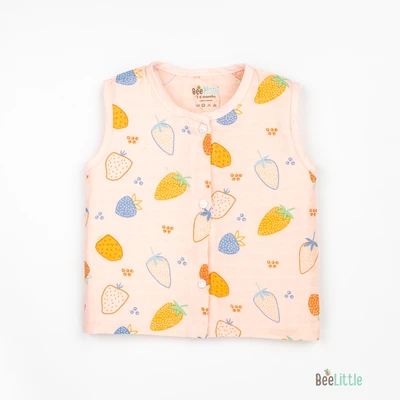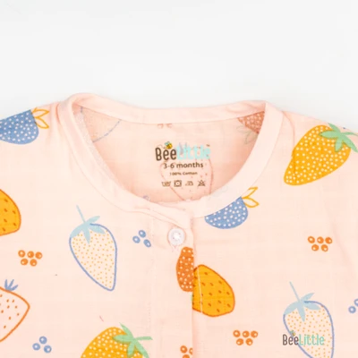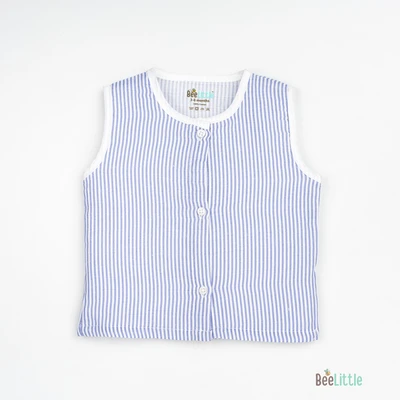Sleeveless jabla fabricated in pure muslin cotton & outlined in round neckline. The bodice of the jabla is enclosed with straight button placket. This soft and fine weave of cotton fits great for your baby and keeps them at ease.