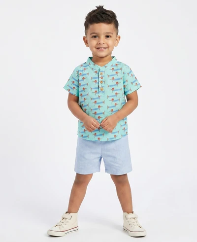 Top and bottom set is the perfect blend of style and comfort. Featuring a mandarin collar, half sleeves, and vibrant ethnic print, the shirt is made with soft and breathable Cotton fabric. The matching solid cotton shorts complete the look with a concealed elasticated waistband for a comfortable fit, creating an effortless outfit that's perfect for any occasion.