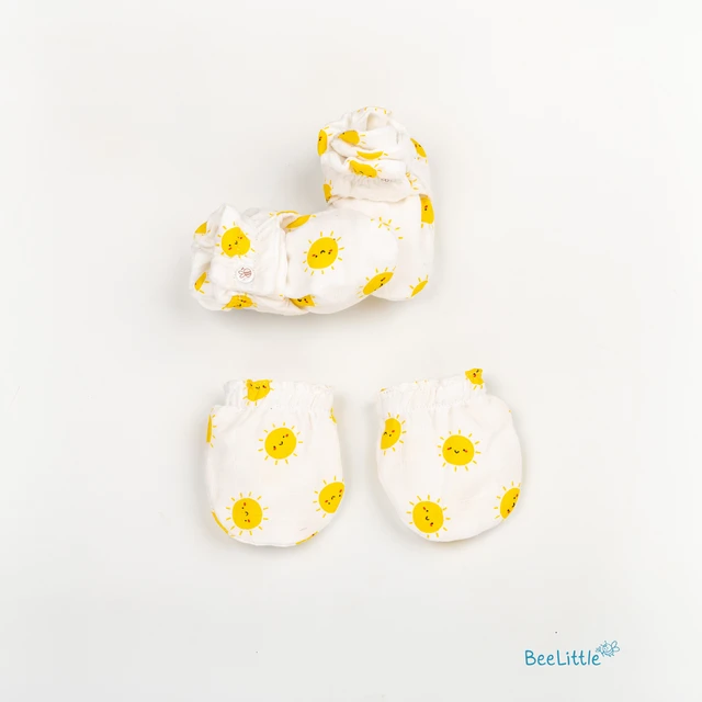 Even a little movement of those tiny hands and toes is enough to melt the strongest of the hearts. Softer than a feather and sweeter than sugar, these tiny heart-melters need all the pampering - for they are going to be small only for a small time! Get'em cozy and all wrapped up in the softest and safest muslin fabric with Beelittle’s muslin mittens and booties combo. Curated with the baby-grade natural muslin, these mittens and booties are safe for your baby to even mouth.