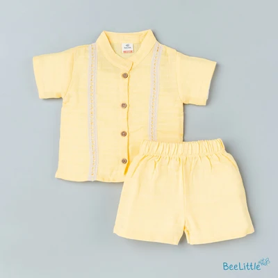 Beelittle shirt and shorts set is a charming and practical outfit. Featuring a distinctive button-down front placket, making it easy to dress your little one. Crafted from soft, breathable fabric, this shirt ensures maximum comfort and freedom of movement. The elastic waistband shorts allow for quick diaper changes, making this versatile set both functional and adorable.