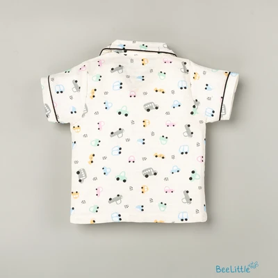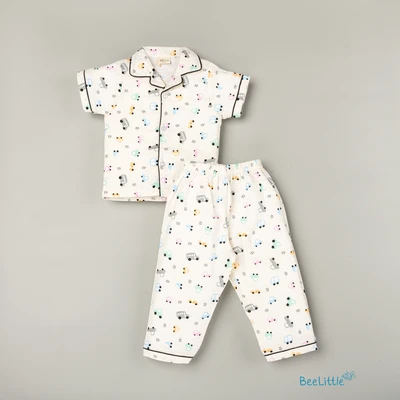 Our Pyjama sets offer comfort and style for your little one's restful night's sleep. Each set includes a Half-sleeve button-up top with a classic collar and finished with contrasting piping. The matching pants feature an elastic waistband and piped cuffs. Made from soft, breathable fabric, they are gentle on baby's skin and are perfect for year-roundwear.