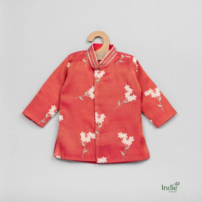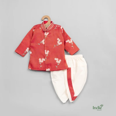 Floral Printed Red Kurta With Dhoti