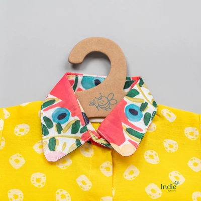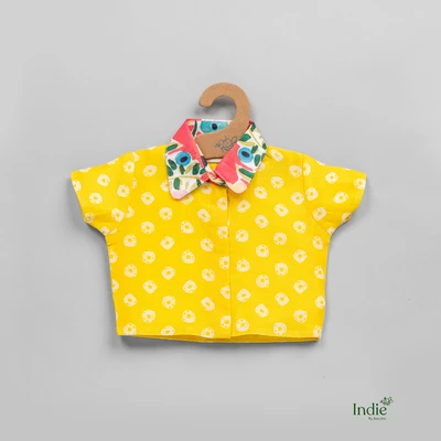 Yellow Floral Printed Collar Top And Pleated Lehanga