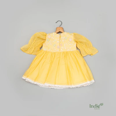 Yellow Kota Doria Embroidered Frock