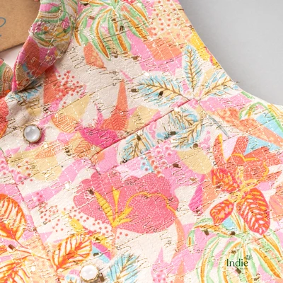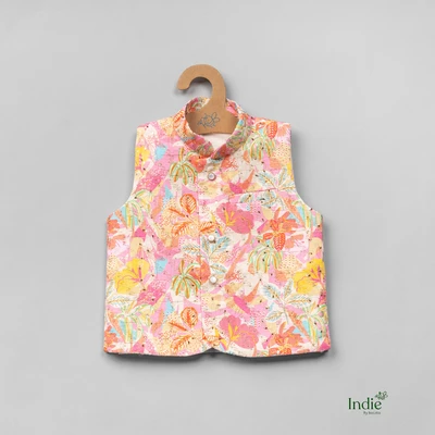 Pink Kurta With Multifloral Printed Jacket And Pant