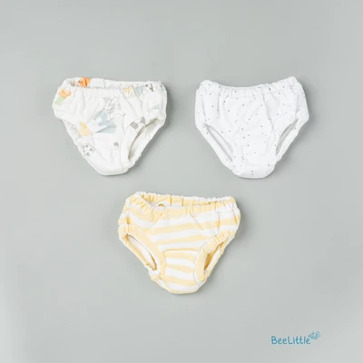 Infants are delicate. As a parent, it is a tedious and confusing task when it comes to choosing the right briefs for them. Right diapers - check! Finest t-shirt - check! Perfect pants - check! But wait, what about a safe and soft brief? Be it a diaper-free time or as daily wear, briefs are something a kid needs the most. From infants to toddlers, the right briefs with the right fit make sure their thighs are safe and free of any discomfort.� If you are not sure of where to find one, then you are in luck! Beelittle brings you premium quality briefs for babies curated with care from cotton fabric. With baby-grade elastics that are wrapped in soft fabric, prints that are safe for skin, and pure cotton fabric that is breathable, Beelittle�s baby briefs are just what your baby bum wants!